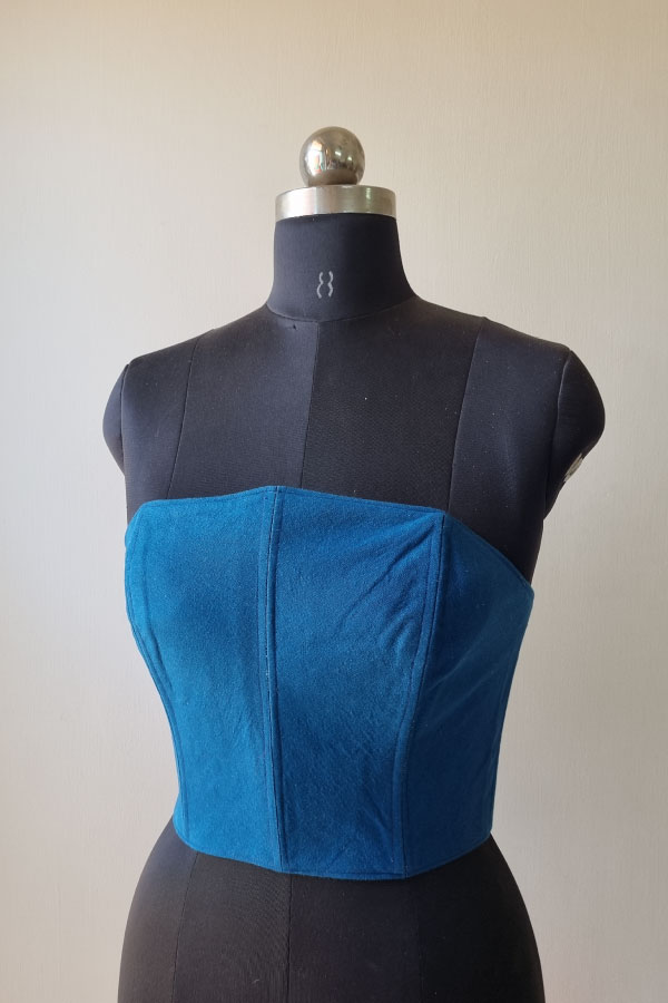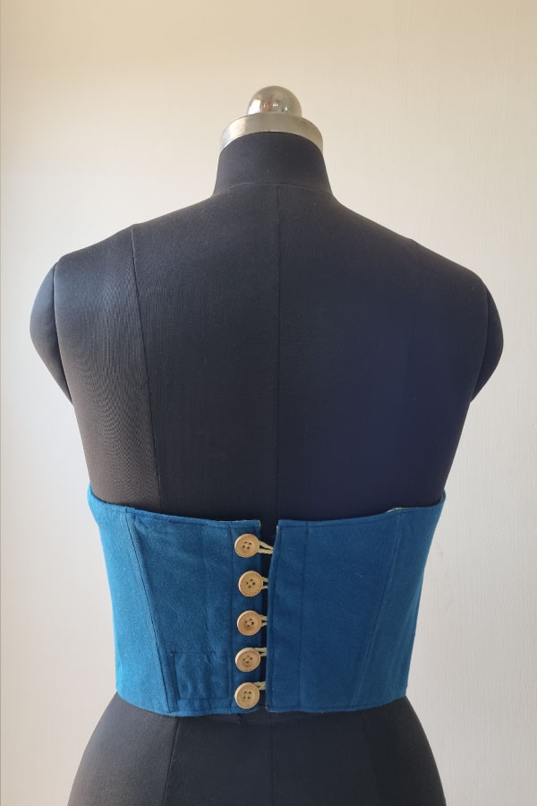 This beauty is crafted out of Cotton fabric with Corset bones and wooden Button closure