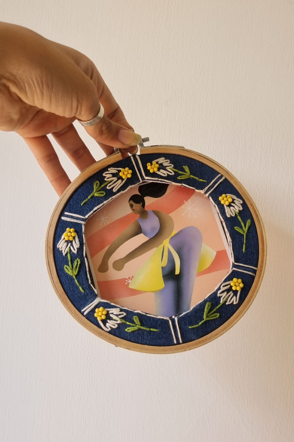 - The floral border transforms the hoop into a radiant frame, blending textile artistry with functional design.